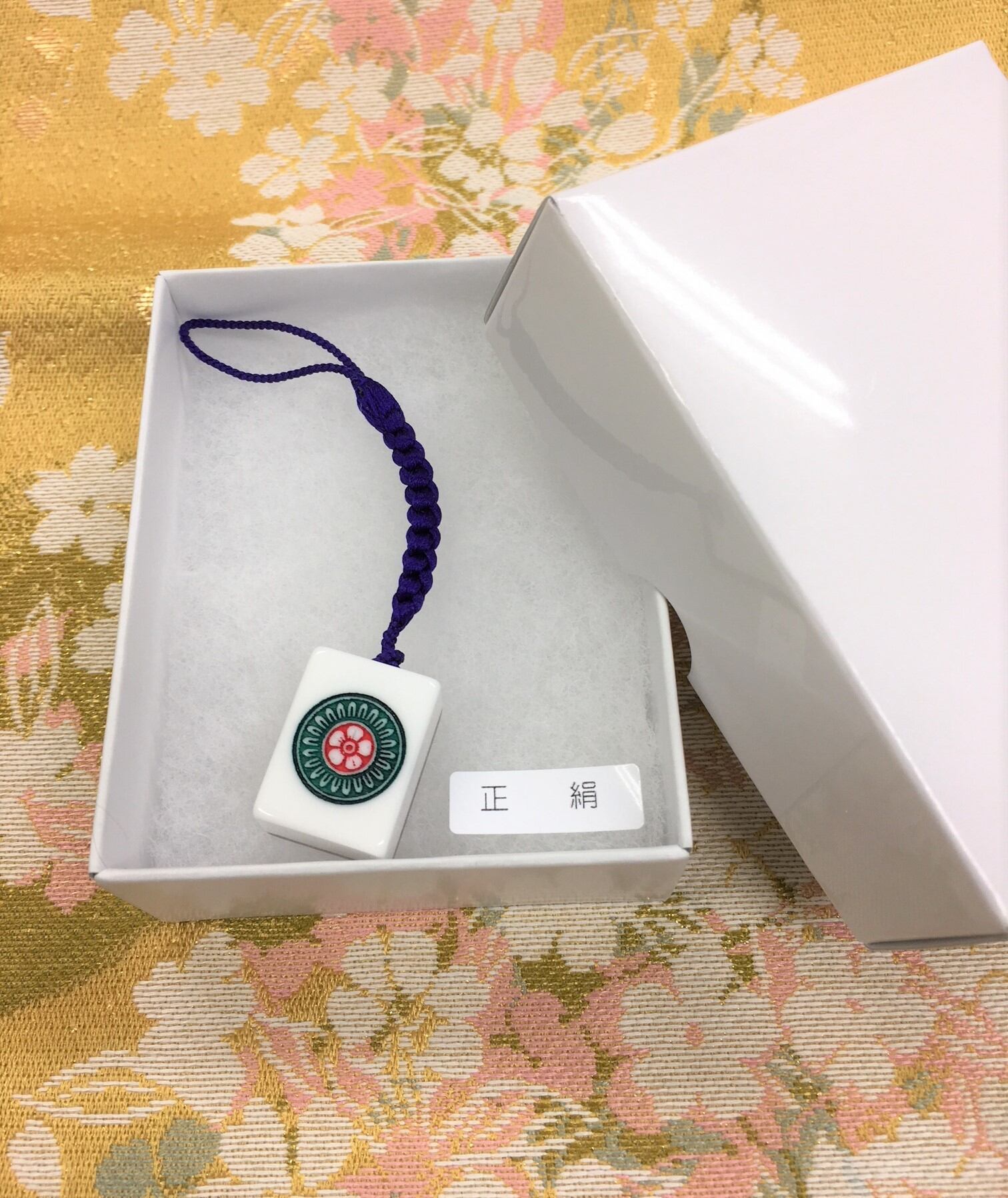 ●箱入り、ラッピング付き。全長105ミリ 重さ6グラム 麻雀牌サイズ:タテ22ミリ×ヨコ17ミリ×厚み13ミリ。箱サイズ:90×70×30