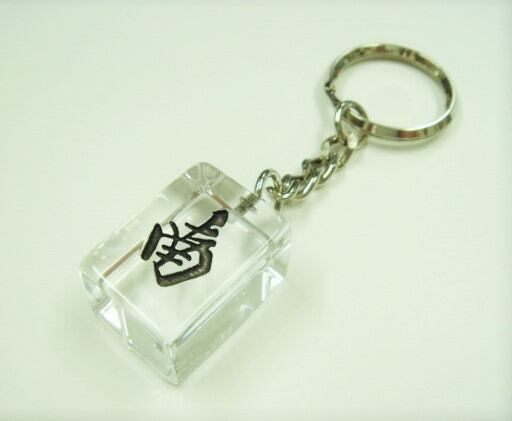 クリア麻雀牌にキーホルダーをつけたものです。