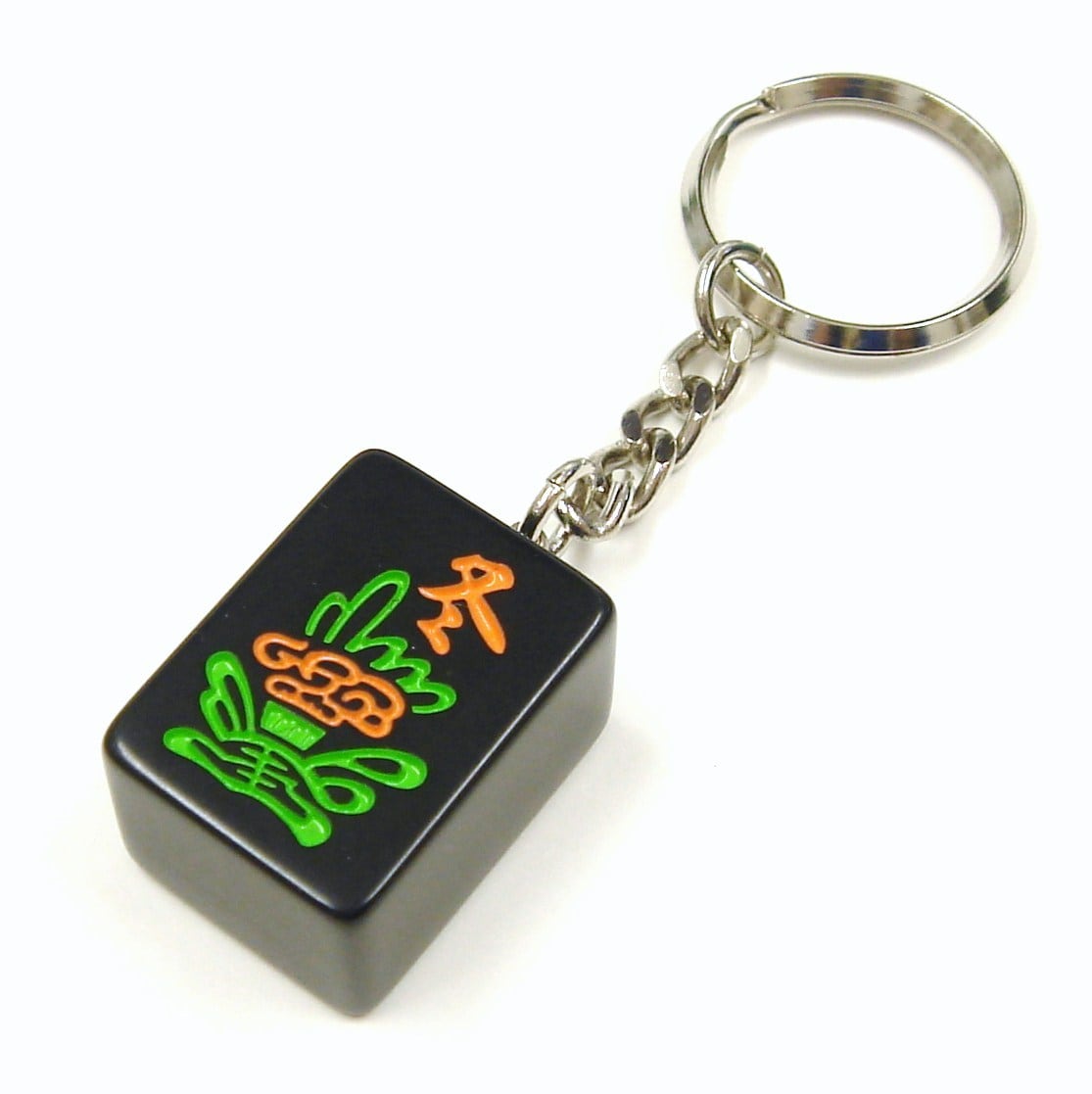 ブラック麻雀パイ(大)キーホルダー 花牌 冬